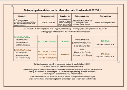 Folgende Betreuungsmodule werden im aktuellen Schuljahr im SchülerClub angeboten: